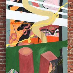 The Commercial Alley Project is a City of Victoria venture which offers an emerging artist four large panels to paint in Downtown Victoria. My four panels work together as one installation, taking into account the red brick wall by pairing it with bright yellows, pinks, and other colours, as wells as incorporating similar reds within the works themselves. The paintings juxtapose intense, convoluted patches of line and pattern with solid blocks of colour, allowing for the image to play with space and composition in interesting and dynamic ways.