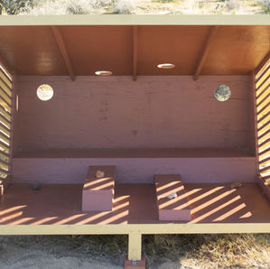 Still, the structure serves as a shady respite from the desert heat. A place to sit or lay and look out at the Mojave. A place to watch the shadows shift and change as the day moves. A sun dial of sorts.