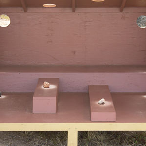 The holes in the roof of this work, Solar Noon Prototype, align with the objects on the floor of the structure exactly at solar noon - creating a perfectly timed spotlight effect. However, this will no longer be the case as the days and months pass and the suns position in the sky changes relative to the structure. Maybe someday I could build a version of this that actually physically rotates so as to stay in sync with solar noon.